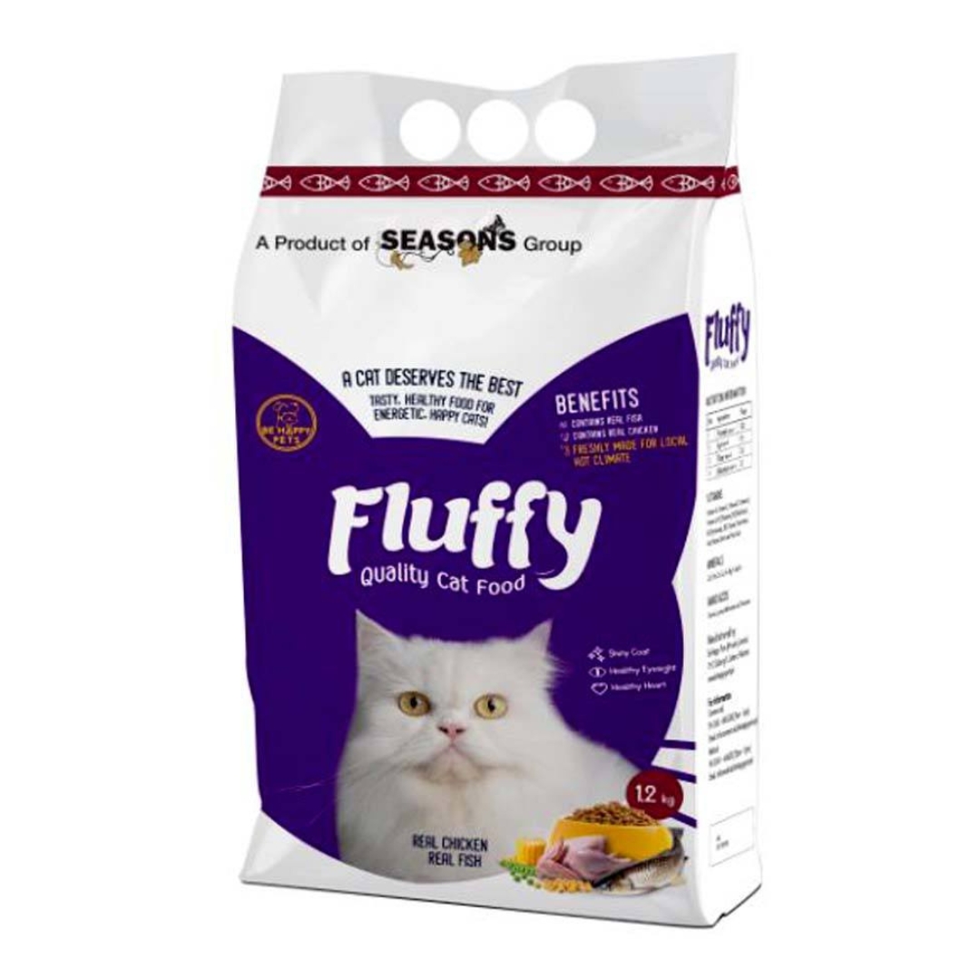 FLUFFY CAT FOOD 1.2KG, designed for shiny skin and coat, and tailored to the unique climate of Pakistan. This pet-specific food is your cat's new ally, ensuring they receive the right balance of nutrition and taste for a healthy, joyful, and intelligent life. Feeding Guide: Weight of Cat (kg) | Daily Amount (g) | Daily Amount (ml)——————-|——————|——————2.2 | 42 | 1502.7 | 50 | 1803.2 | 58 | 2103.6 | 67 | 2404.0 | 75 | 2704.5 | 83 | 3005.0 | 92 | 3305.45 | 100 | 360 * For kittens aged 3-6 months: 20-35 grams per day. ** Gradually transition to Fluffy Cat Food over seven days to prevent digestive issues. Always provide ample water to your cats to prevent urinary tract issues and do not exceed the recommended feeding quantity.